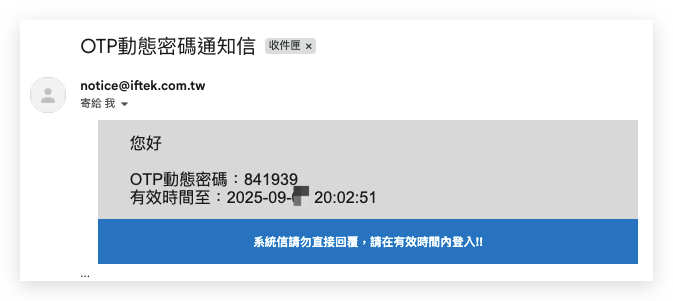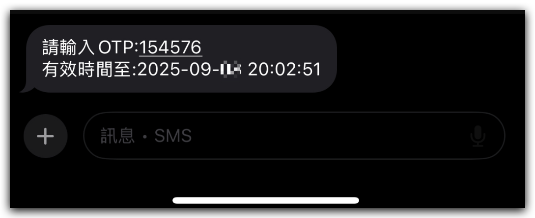 接續填寫 ➜ 信件、簡訊 收到的「OTP驗證碼」