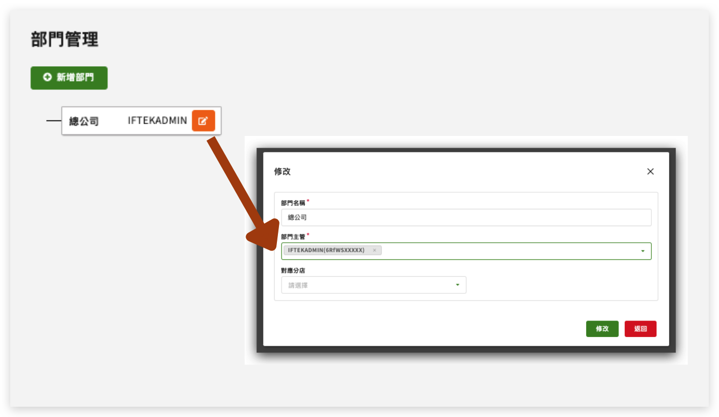 STEP 2:把您目前登入的管理員帳號,加入「 部門的主管 」