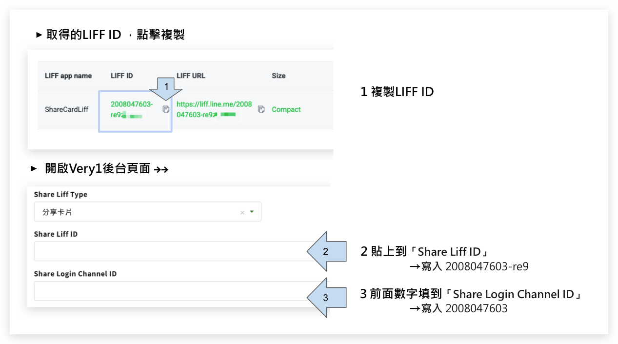 ▶ 「LIFF ID 前面數字」→ 填到「Share Login Channel ID」