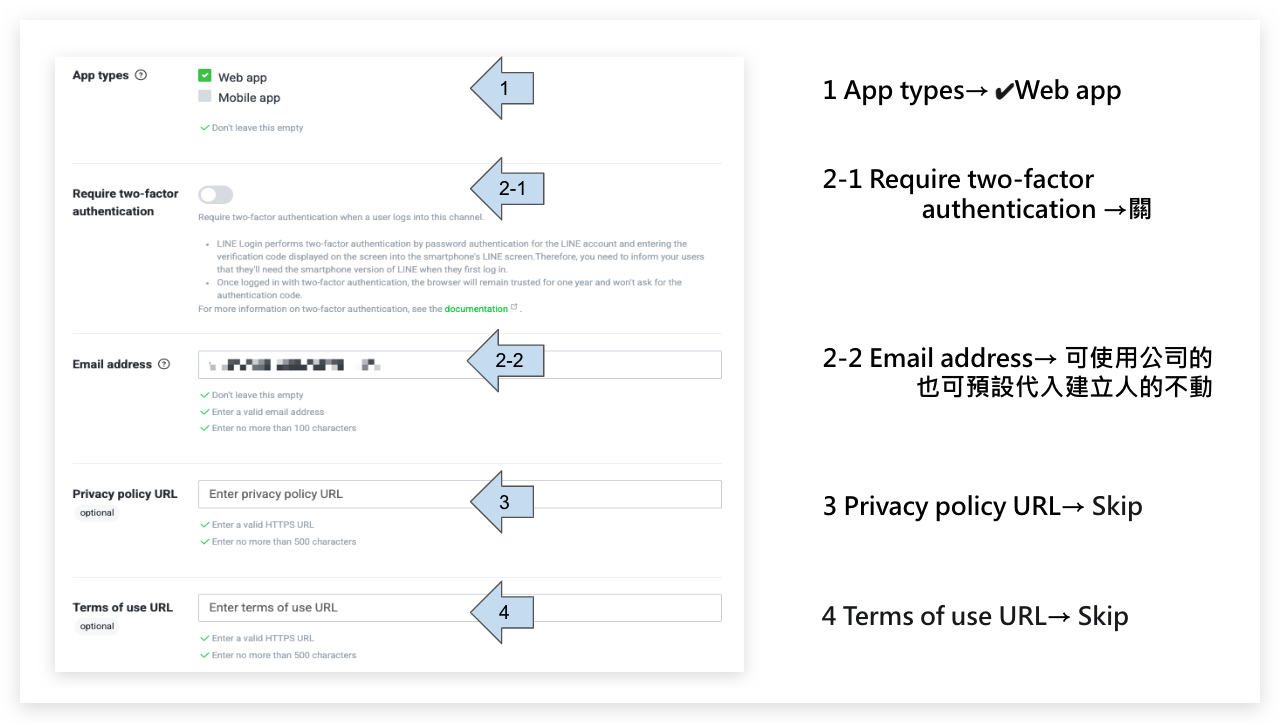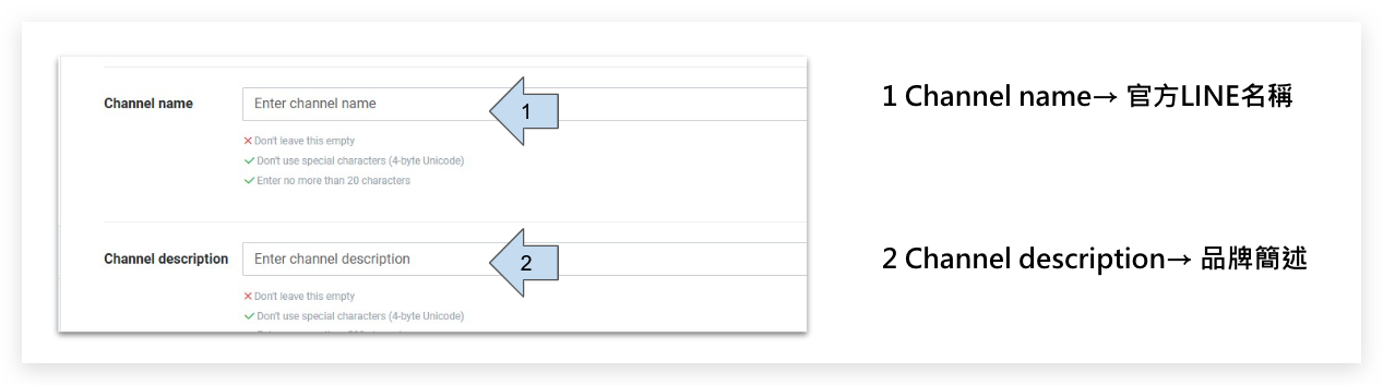 STEP 2-1: 照圖片&項目,依序完成填寫 Create a new channel