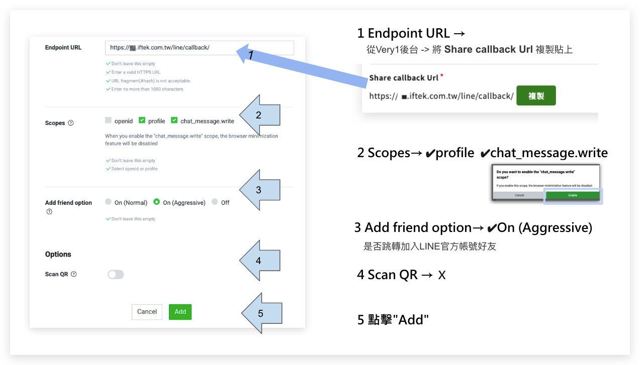 ▶ Endpoint URL → 從Very1後台「將 Share callback Url 複製貼上」