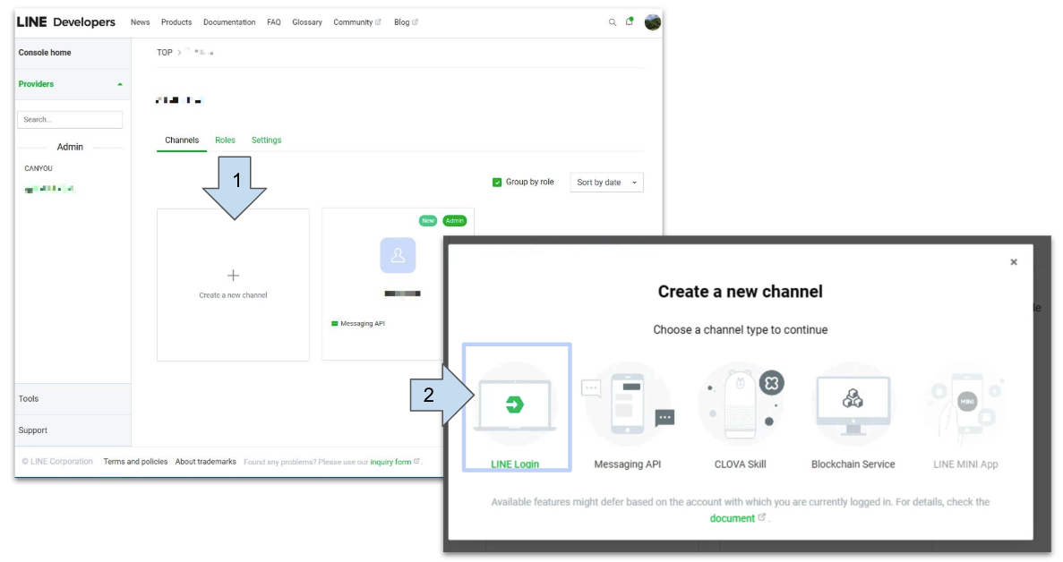 STEP 1-1: LINE Developers 頁面 → 左側Admin → 點擊「Provider」