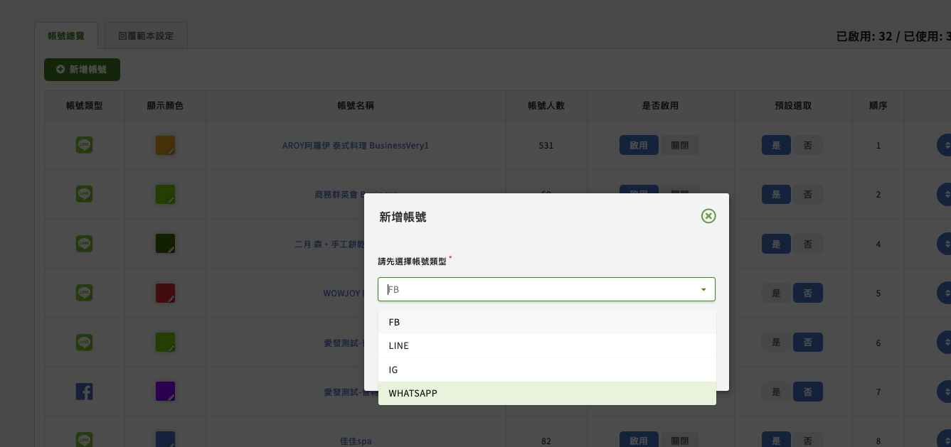 3. 1 選擇新增的帳戶類型「WHATSAPP」