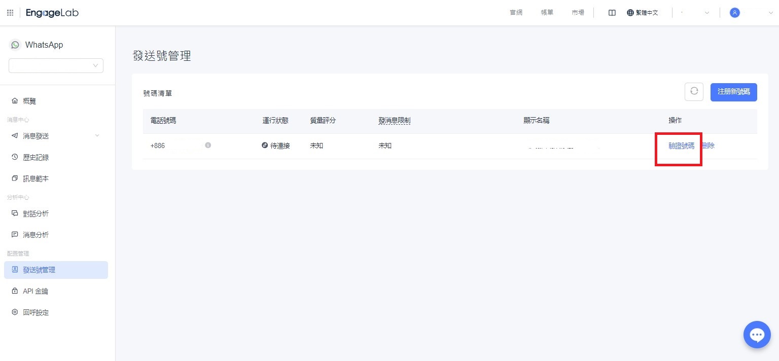 STEP 4.6 進行手機驗證確認,需要到「發送號管理」,找到驗證的觸發(第三步驟)